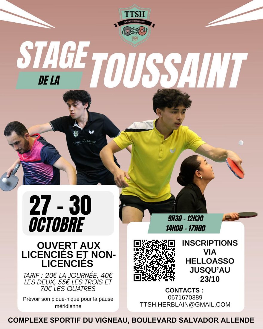 A l'occasion des vacances scolaires de la Toussaint, le TTSH vous propose plusieurs stages de Ping au Vigneau.